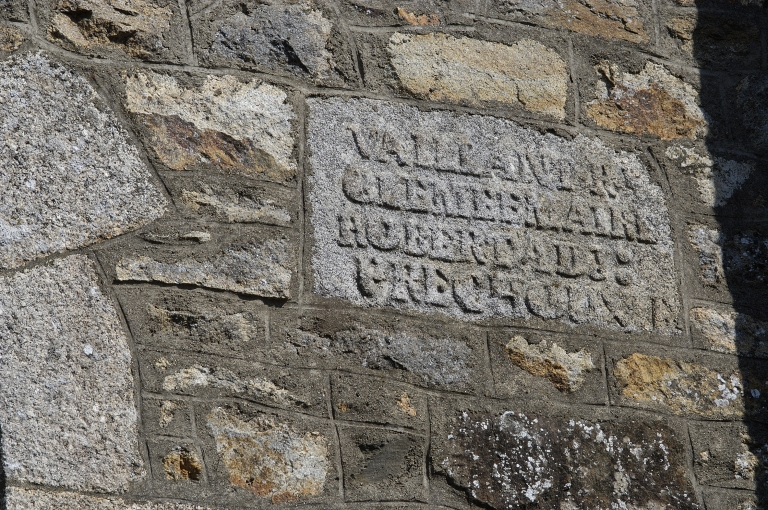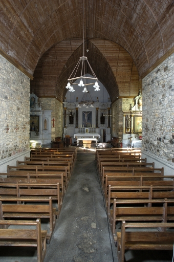 Plan en croix latine, clocher en façade, sacristie accolée au chevet, chevet plat. Inscription partiellement lisible donnant les noms des commanditaire, mur extérieur du chevet : VAILLANT/ GLEMEE (.) / ROBERT (.) / PRECHOUX.