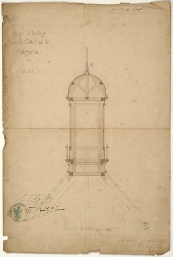 Campanile de l'église paroissiale, dessin par l'architecte Mellet. (A. D. d'Ille-et-Vilaine : Pleugueneuc 2 O 227-30).