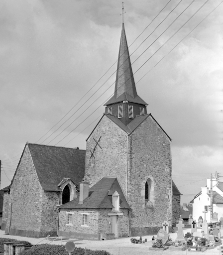 Eglise paroissiale devenue trève de Saint-Jean-sur-Vilaine entre le 16e siècle et la fin du 18e siècle. La paroisse a été recréée en 1825. Des vestiges de l'appareil roman sont encore visibles dans les murs sud et nord de la nef. Le choeur, la tour et la sacristie sont construits en 1621 et 1622, la nef a été remaniée en 1856 (porte la date) .