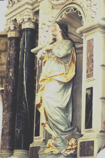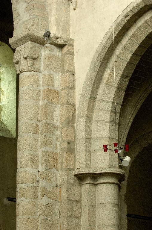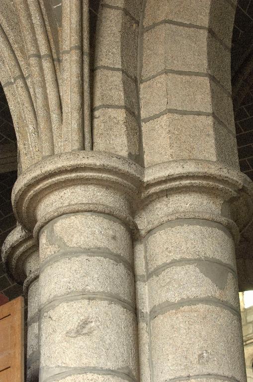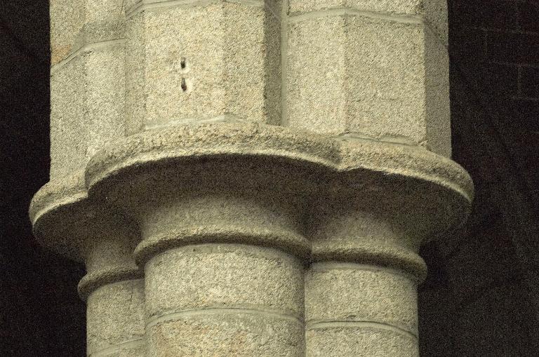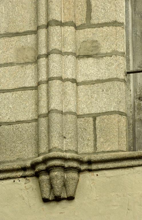La tour nord-ouest est le seul vestige de l’ancienne façade de l’église abbatiale depuis l’incendie qui détruisit en 1780 les quatre premières travées de la nef. Son appareil de granite, semblable à celui du chœur, ses chapiteaux à corbeille lisse, de même que le réseau de trilobes et de quadrilobes qui orne les fausses arcatures appliquées sur trois de ses côtés, sont comparables au décor déjà rencontré sur le chœur. Toutefois, l’empiétement des arcs des arcatures sur le sommet de leur réseau, les chapiteaux à feuillages renflés, les frises de quadrilobes refouillés qui ornent la base et le sommet de l’étage des cloches, le tracé anguleux de la frise supérieure qui rappelle les orbevoies de ferronnerie, enfin le ressaut du cordon qui cerne la base des fenêtres de l’étage des cloches tout comme l’interruption de celui qui vient à la rencontre de leurs arcs, relèvent d'un formalisme qui appartient clairement aux premières décennies du XIVe siècle. Cette tour exceptionnelle, unique dans le paysage architectural gothique breton, fut construite en hors-œuvre par rapport à la nef de l’église qu’elle ne touchait que par son côté sud. Elle ne peut se comprendre que rattachée à un vaste et ambitieux programme de reconstruction générale de la façade occidentale de l’abbatiale incluant deux clochers symétriques, placés de part et d’autre de l’aboutissement des collatéraux de la nef romane. La tour qui s’élève d’un seul jet sans aucun retrait jusqu’à la plate-forme du clocher est cantonnée sur son angle sud-ouest par une tourelle de plan rectangulaire contenant l’escalier en vis. Ce dernier est curieusement éclairé du côté de l’ouest par des séries de meurtrières alignées que recoupent de multiples meneaux ; le couronnement de cette tourelle, une petite guérite de plan rectangulaire coiffée d’un toit en bâtière, atypique dans nos contrées, rappelle les toitures à deux versants des clochers des églises rurales du Cotentin. Sur la face sud de la tourelle, trois portes murées à différentes hauteurs devaient correspondre aux différents étages d’une importante façade écran qui aurait dû venir se plaquer contre l’extrémité de la nef romane. M. Déceneux rapproche avec justesse ces indices de la composition de la façade de la cathédrale de Saint-Pol-de-Léon, où se retrouve de bas en haut un passage devant la maîtresse vitre occidentale, puis une galerie ajourée à deux coursières superposées. Il est probable que les troubles de la guerre de Succession laissèrent en suspens ce projet grandiose qui devait apparenter la nouvelle façade de l’abbatiale de Redon à celle d’une cathédrale. À la base de la tour, du côté sud, une suite de trois arcs formerets correspond à des voûtes qui devaient se raccorder avec les collatéraux de la nef romane. Ces arcs retombent sur des culots constitués de plusieurs cônes renversés bien différents de ceux employés dans le chœur, et qui ne connaissent que peu d’équivalents dans l’art gothique breton. Apparus probablement pour la première fois dans le chœur de Guingamp vers la fin du XIIIe siècle, ces culots très particuliers, que l’on retrouve dès la fin du XIIe siècle dans plusieurs édifices anglais comme l’église Saint-Giles de Standlake dans l’Oxfordshire, employés en abondance dans le transept de Fountains Abbey au XIIIe siècle, se retrouvent dans le transept de Guingamp dans les premières années du XIVe siècle, au moment où se construisait la tour de Redon. D’autres aspects de celle-ci confirment sa filiation avec le chantier de Guingamp. On y retrouve, outre les mêmes chapiteaux à feuillages stylisés et profil cassé, un goût pour les décors plaqués ainsi qu’une certaine licence dans l’emploi du vocabulaire architectural comme le montrent par exemple la ligne de colonnettes qui, entre deux cordons moulurés, orne à mi-hauteur la face sud de la tour, et ne reçoit aucune arcature ainsi que les ressauts en élévation et en plan des cordons passant à la base des fenêtres de l’étage des cloches, qui rappellent le ressaut du triforium de Guingamp dans l’axe de la nef. Au sommet de la tour, les ailettes évidées d’un quadrilobe qui supportent les gargouilles de la plate-forme et sortent du glacis des contreforts, motif assez rarement rencontré, renvoient là encore vers Guingamp, où ce détail se retrouve, sans évidement, sur le porche du bras nord. Enfin et surtout, la flèche de Redon apparaît comme une véritable citation de celle de la tour de croisée de Guingamp. L’absence de garde-corps, les lucarnes coiffées de petits auvents en bâtière en encorbellement, les clochetons à huit pans dont les flèches reposent par l’intermédiaire de linteaux droits et unis sur des piles fasciculées de trois colonnettes à chapiteaux à corbeilles lisses, tous ces éléments qui se retrouvent dans l’une et l’autre flèche, permettent plus encore que ceux évoqués plus haut d’attribuer avec beaucoup de vraisemblance le clocher de Redon à l’atelier qui travaille à Guingamp dans les premières années du XIVe siècle.