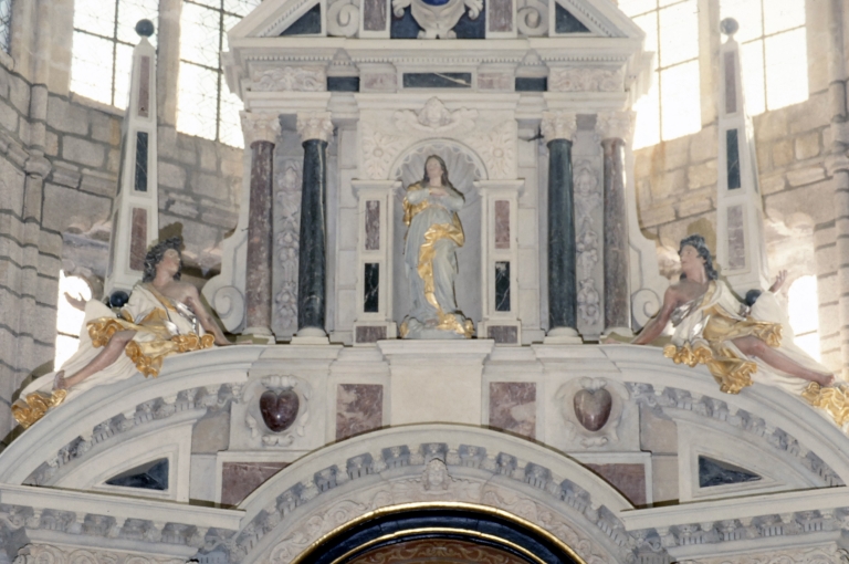 L’architecture des chapelles rayonnantes renvoie dans son principe à celle du vaisseau central, dont elle offre comme une version réduite et simplifiée. Constituées d’une travée droite de plan carré et d’une courte absidiole à trois pans, ces chapelles sont en revanche couvertes d'une voûte rectangulaire peu profonde qui ne couvre qu’une moitié de la travée droite et d’une voûte à six quartiers qui englobe l’autre moitié et l’absidiole elle-même et dont la clef est ramenée vers le centre du volume. La retombée des voûtes sur une unique colonne dans la travée droite et sur un faisceau de trois colonnettes dans l’absidiole, et leur arrêt au niveau d’un cordon mouluré qui court à la base des fenêtres sur des culots en cônes renversés, reproduisent en réduction le principe de l’élévation du vaisseau central. L’aspect « creusé » de ces voûtes, dont les voûtains semblent séparés par de petits diaphragmes repercés par des évidements circulaires, est lié au couvrement particulier de ces chapelles : une terrasse en dalles de pierre plates faisant coïncider intrados et extrados. Cette disposition savante, qui assimile les nervures des voûtes des absidioles à des arcs-boutants intérieurs, est à rapprocher de celle mise en œuvre dans le chœur de Saint-Nazaire de Carcassonne, édifié entre 1269 et 1329, dont la conception fit l'admiration de Viollet-le-Duc. Dans un article récent, Y. Gallet restitue à juste titre le chœur de Redon dans le contexte général d’épuration stylistique propre à toute une mouvance du gothique rayonnant, qui apparaît dans les dernières décennies du XIIIe siècle et s’interroge sur la filiation de cette élévation et ses sources possibles. Le rapprochement fait par l’auteur avec certains édifices de la vallée de l’Oise, de la seconde moitié du XIIIe siècle, qui emploient des piles quadrilobées ainsi qu’une modénature simplifiée, propose une alternative aux origines anglaises jusqu’alors exclusivement avancées pour expliquer l’architecture du chœur de Redon. Il n’en reste pas moins que les piles quadrilobées, les chapiteaux à corbeille lisse, de même que les arcatures chanfreinées sont d’un emploi très répandu en Angleterre, alors qu’ils sont peu fréquents dans le domaine français. Quoiqu’il en soit, il n’est pas nécessaire d’aller chercher si loin des éléments de comparaison alors qu’ils existent tout près dans des édifices normands ou bretons contemporains. Les mêmes chapiteaux à corbeille lisse, que l’on rencontre au XIIIe siècle dans plusieurs édifices de Normandie comme le cloître du Mont-Saint-Michel ou la salle capitulaire de Hambye, se retrouvent également en Bretagne, dans le chœur de Guingamp, qu’il convient de dater du dernier quart du XIIIe siècle, dans celui de Saint-Melaine de Rennes, associés à des piles quadrilobées et des arcs chanfreinés, ou encore à Bon-Repos. L’emploi d’une modénature simplifiée, dépourvue de bases et de chapiteaux, que l’on rencontre par exemple sur le triforium du déambulatoire extérieur du chœur de la cathédrale de Coutances, dans le chœur de l’abbaye de Hambye ainsi que dans les nefs de Vire, de Mortain et de Lonlay, mais aussi sur les fenêtre hautes de la nef de Dol, se retrouve dans le chœur de la même cathédrale, généralisé au triforium et aux fenêtres hautes. L’association libre de trilobes et de quadrilobes non inscrits dans des arcs, également employée dans le triforium du chœur de Dol, s’observe probablement à la même époque, c’est-à-dire dans les dernières années du XIIIe siècle, dans le réseau des fenêtres hautes de Saint-Mathieu-de-Fineterre. Enfin, le dessin même du triforium de Redon, une suite d’arcs trilobés simplement chanfreinés, est comme déjà présent dans celui du chœur de Dol, associé certes à des quadrilobes, avec la même modénature épurée exempte de bases et de chapiteaux et ce tracé à suite d’arcs trilobés est d'ailleurs assez fréquent dans les garde-corps des coursières normandes, comme le montrent entre autres les exemples de Coutances, de Bayeux ou encore l’église de l’abbaye d’Ardenne près de Caen.