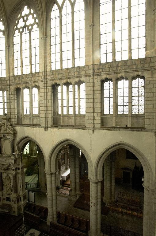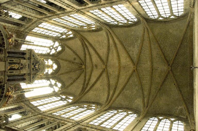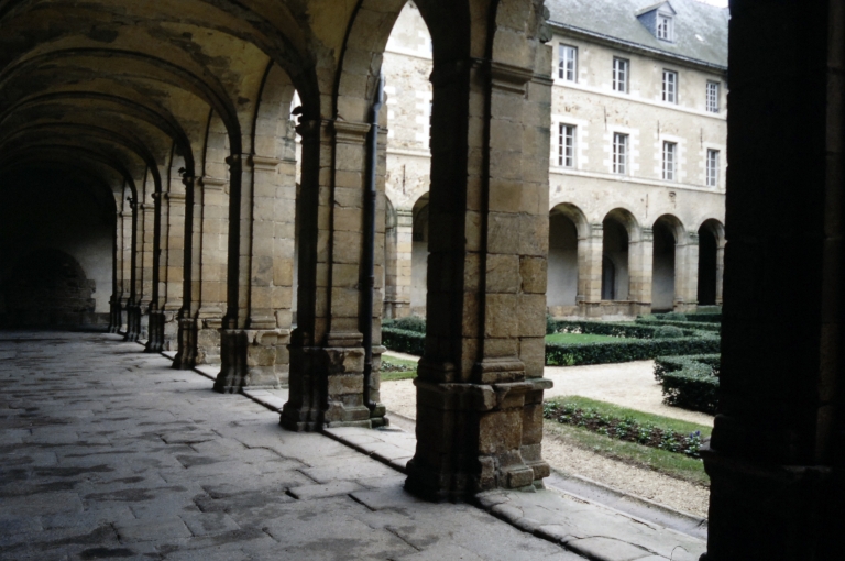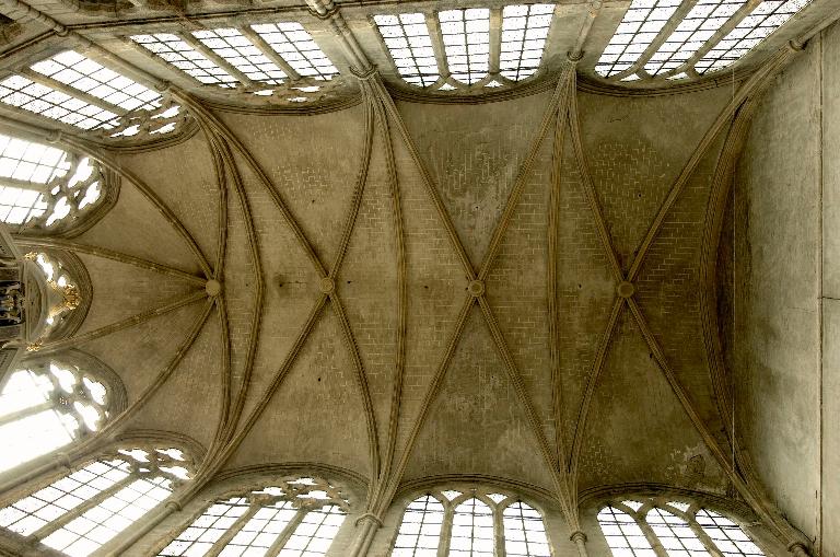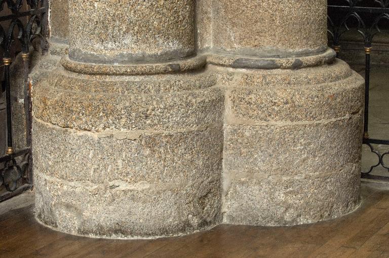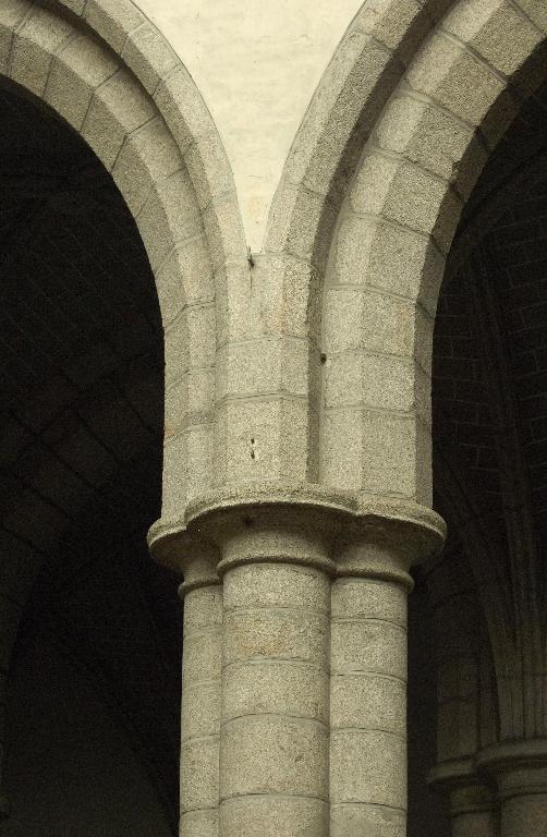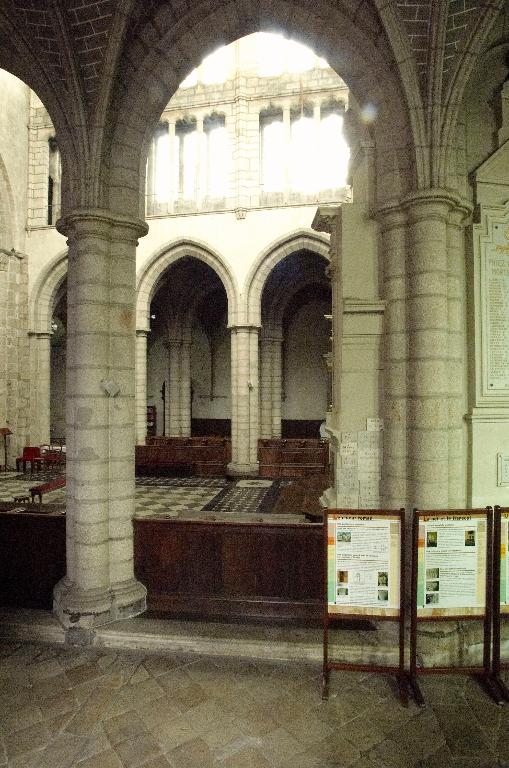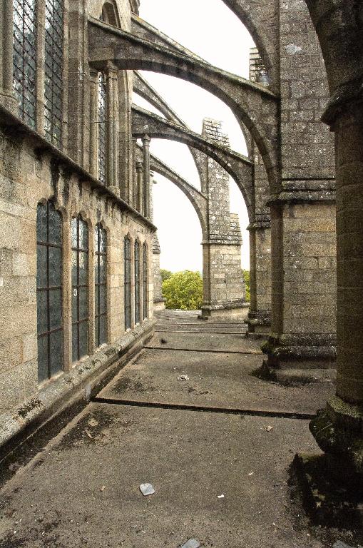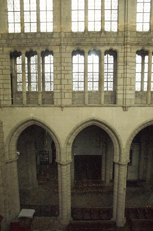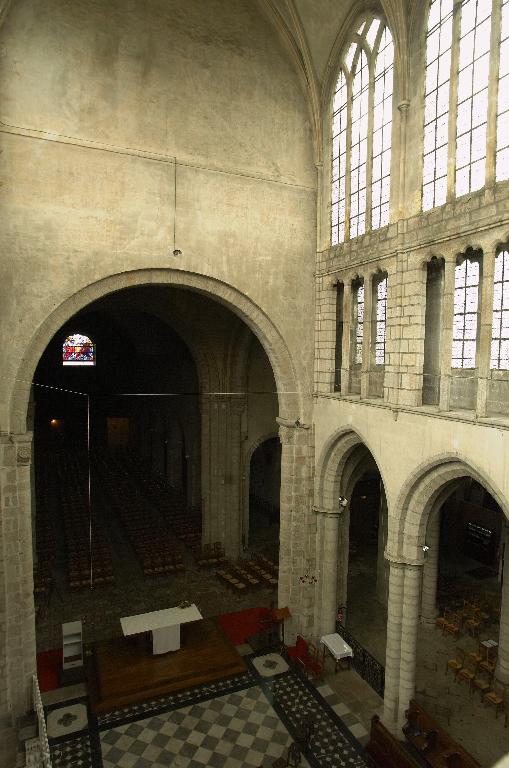 Le nouveau chœur est formé de trois travées droites et d’un rond-point à cinq pans que cerne un déambulatoire. Au niveau des travées droites, ce déambulatoire ouvre sur trois chapelles de plan rectangulaire qui communiquent entre elles et, autour du rond-point, sur une couronne de cinq chapelles rayonnantes. On ne peut sur ce point se fier au plus ancien plan connu de l’abbatiale, dressé par les Mauristes en 1650, qui omet une travée et donne de la représentation des espaces une version très schématique. En réalité, les plans récents du chœur montrent que les travées droites se rétrécissent en largeur vers l’abside, indice quasi certain selon M. Déceneux d’une reconstruction sur les fondations de l’ancien chœur roman. L’ensemble frappe par son dépouillement et son unité de style. Toutes les piles, composées de quatre colonnes posées en croix, sont coiffées de chapiteaux à corbeille lisse et tailloir dédoublé, et reçoivent des arcs à deux rouleaux chanfreinés, qu’on retrouve à l’entrée des chapelles latérales. Les piles d’entrée des chapelles rayonnantes, élargies pour masquer l’épais mur de séparation, laissent apparaître le noyau central ; néanmoins, l’ouverture de l’arc restant identique, l’architecte a dû dévier le tracé du second rouleau qui sert de formeret juste avant sa retombée sur les chapiteaux. L’unité de conception de ce chœur est particulièrement remarquable. Son parti de plan tout autant que l’élévation du vaisseau central affirment clairement son ralliement à la mode française de la seconde moitié du XIIIe siècle : au-dessus des grandes arcades, le triforium à claire-voie et les larges fenêtres hautes dépourvues d’ébrasements appartiennent à l’esthétique nouvelle des vaisseaux en « cages vitrées » du gothique rayonnant. Par-delà son apparente simplicité, cette élévation ne fait que confirmer une recherche plastique et architectonique extrêmement savante. Au-dessus des grandes arcades dont les écoinçons sont laissés nus et sans aucun décor, les deux étages supérieurs contrastent par leur aspect largement ouvert. L’important triforium à claire-voie, dont l’ouverture représente en hauteur les deux tiers des fenêtres hautes et dont l’arcature de trois travées est rigoureusement alignée sur l’ouverture de ces dernières, vient presque toucher le cordon mouluré qui court à leur base et apparente l’ensemble à un véritable clerestory. Cette formule du triforium à claire-voie, apparue sur les grands chantiers d’Ile-de-France vers le milieu du XIIIe siècle, comme la nef de la basilique de Saint-Denis, édifiée par Pierre de Montreuil à partir de 1240, les chœurs de Beauvais et d’Amiens, ou encore celui de la cathédrale du Mans, entrepris vers 1250, relève d’une conception moderne liée à un mode de couvrement savant des collatéraux, soit par des toits à deux versants, soit comme le choix en a été fait ici, par des terrasses maçonnées à faible pente. Curieusement, là où les constructeurs du domaine royal relient assez rapidement les meneaux des fenêtres hautes aux colonnes du triforium tout en y conservant des arcatures en tiers-point, le maître d’œuvre de Redon innove par une forme d’arcature alignée, remontée au maximum, mais maintient une solution de continuité entre les deux niveaux par le cordon mouluré qui les sépare et surtout ne relie pas physiquement les deux claires-voies. La retombée des voûtes sur de minces colonnettes adossées arrêtées juste en-dessous du cordon inférieur sur des culots en cône allongé relève de cette épuration générale de la modénature.