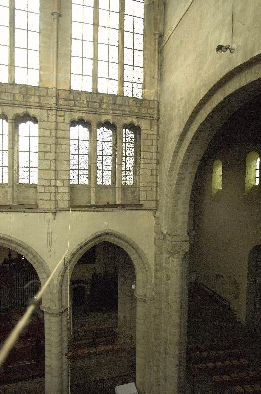 La différence dans le réseau des fenêtres hautes, lancettes recroisées d'inspiration normande pour les deux première travées droites, et lancettes en arc trilobés surmontées de trois trilobes tangents pour les baies suivantes, confirme ce parti pris de hiérarchisation entre la première partie du sanctuaire et l’abside qui intègre esthétiquement la dernière travée droite du chœur. M. Déceneux fait observer qu’une semblable hiérarchie dans l’emploi des baies se retrouve dans le chœur de la cathédrale du Mans, dont les chapelles rayonnantes sont éclairées par de simples lancettes, le triforium par des baies à lancettes recroisées et l’étage supérieur par des fenêtres à remplage tréflé ; on verra plus loin que ce n’est pas le seul point de comparaison possible entre les deux édifices. Ce jeu subtil entre les pleins et les vides, entre association et dissociation, unification et différenciation, ornement et dépouillement, témoigne de la science consommée du maître du chœur de Redon à manipuler les figures de style et la syntaxe de son art.
