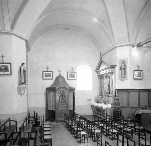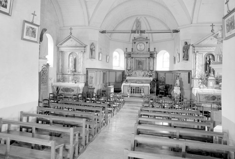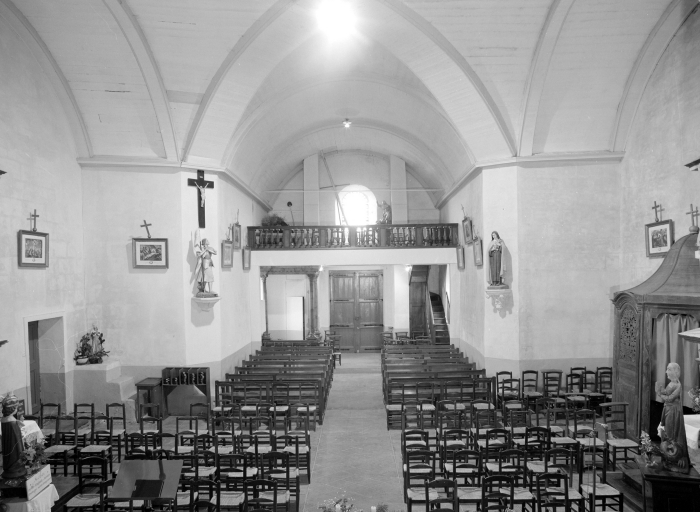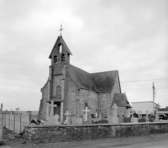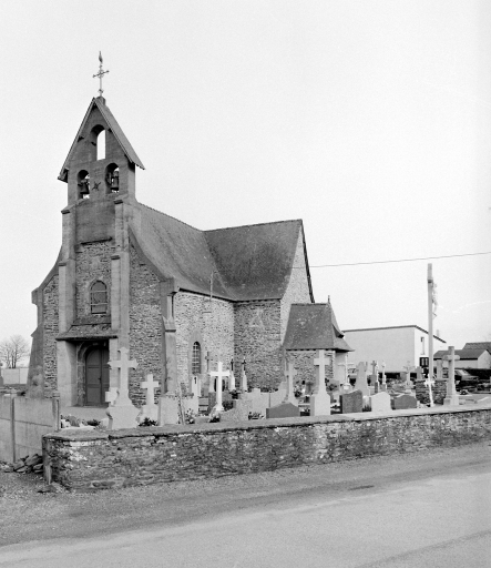 Chapelle frairienne mentionnée au 17e siècle, reconstruite au 1er quart du 18e siècle, porte la date 1712 sur la fenêtre du transept sud. Massif occidental refait au 20e siècle ainsi que les baies de la nef. Elle est érigée en église paroissiale en 1820. Croix monumentale du 16e siècle ?