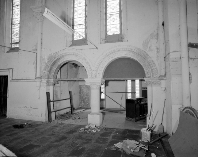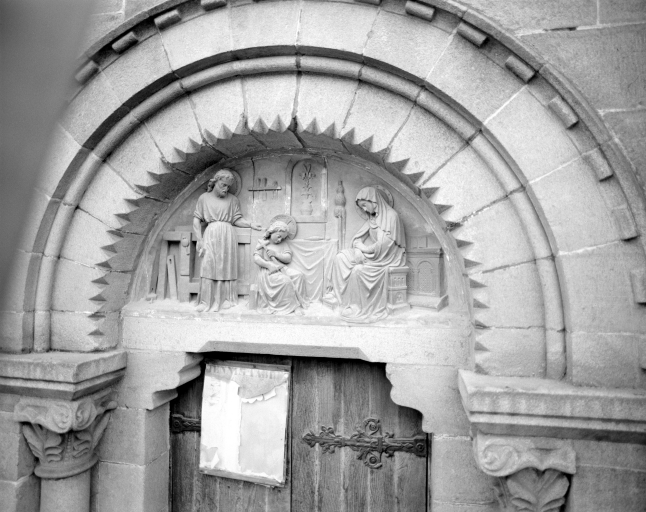 Support : tympan, façade principale ; support : fenêtres extérieures, voussures, arcades intérieures, chapiteaux, modillon.