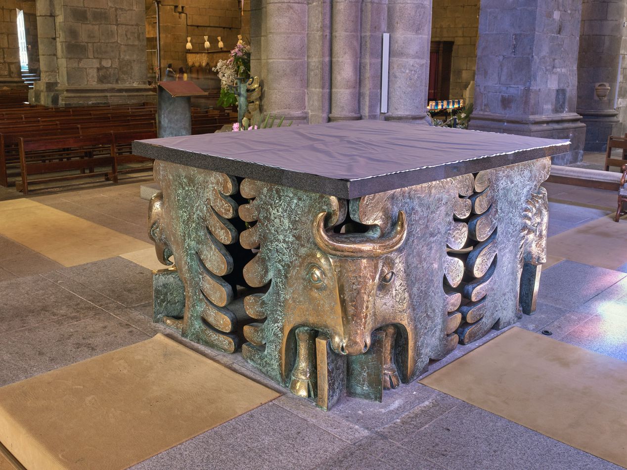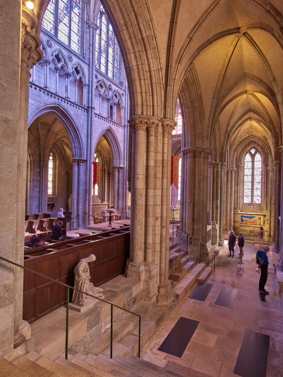 Les travaux de restaurations de l'édifice ont été confiés au lendemain de la guerre à l'architecte Raymond Cornon puis plus récemment à Pierre Prunet. Les vitraux des bas-côtés sont de Max Ingrand, ceux du choeur et du transept sont réalisés en 1971 par Jean Le Moal.