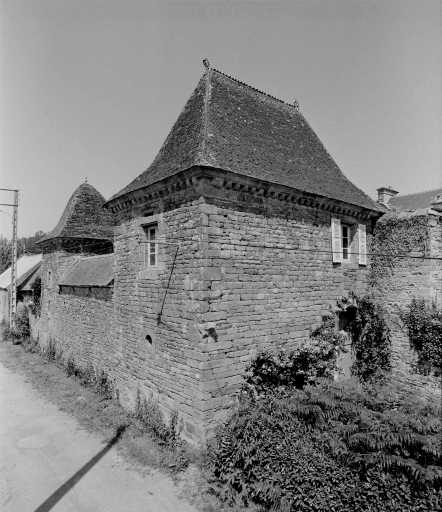 Manoir avec toit à longs pans et pignon couvert ; colombier avec toit à l'impériale ; corps de passage avec toit à longs pans et à croupe.