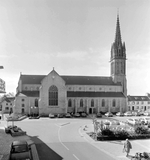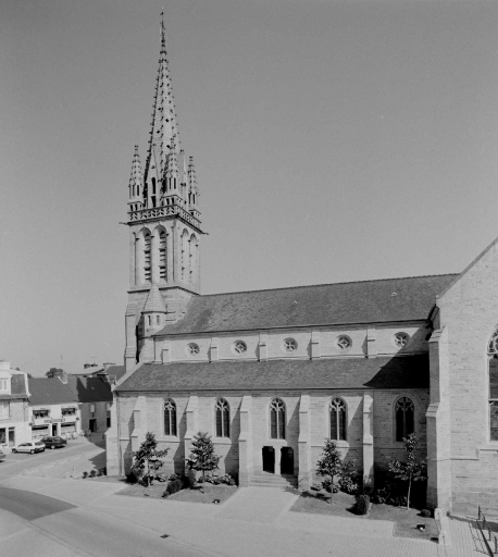 Ancienne église du 18e siècle démolie en 1894 ; nouvelle église Saint-Pierre et Saint-Paul construite de 1894 à 1896 par l'architecte le Guerranic : première pierre bénite le 15 avril 1894, bénédiction de la nouvelle église le 12 avril 1896 ; monument aux morts fait en 1920 par le sculpteur Le Goff et le fondeur Chapal.