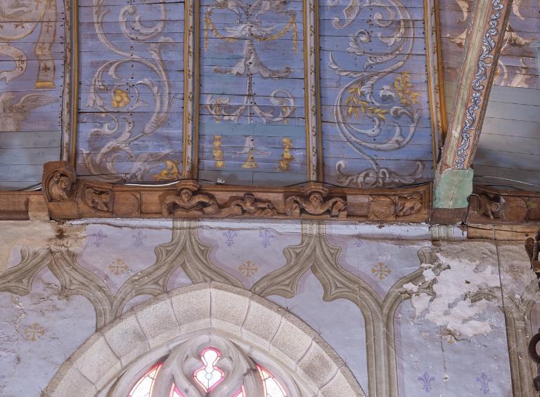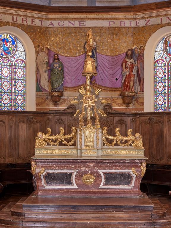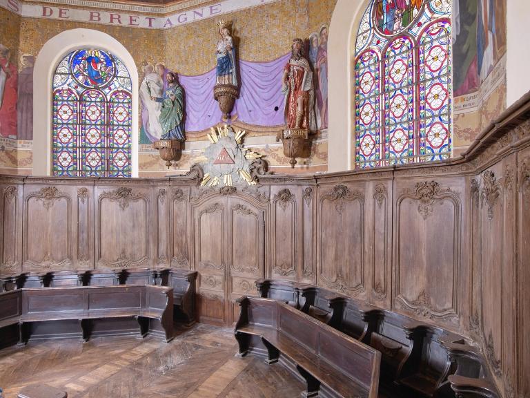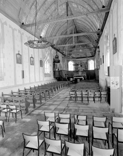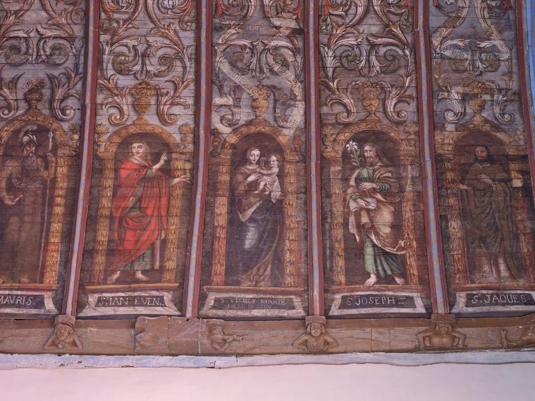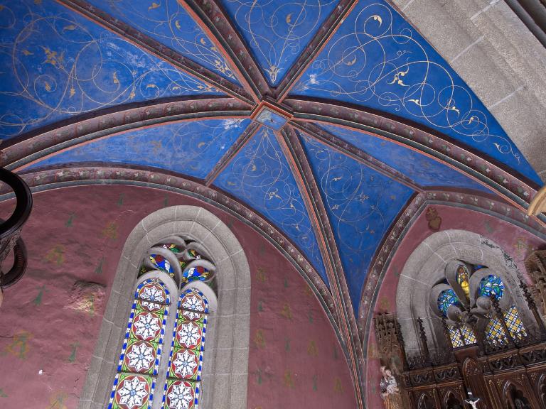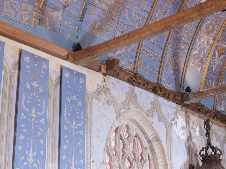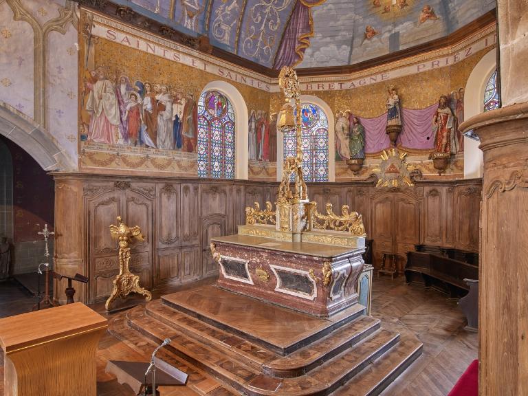 Vers le milieu du 19e siècle, l'intérieur de l'église fait l'objet d'une importante campagne de décoration. Le décor peint de la fausse voûte lambrissée est réalisé en 1858 par Raphaël Donguy de Saint-Brieuc. Les retables néo gothiques de la chapelle nord et de la chapelle sud par le sculpteur Paul Guibé en 1865 et 1868. Une grande composition peinte sur toile représentant la procession des saints de la Bretagne depuis les origines jusqu'à l'époque moderne est commandée en 1936 au peintre Victor Boner pour orner les cinq pans de murs du chœur.