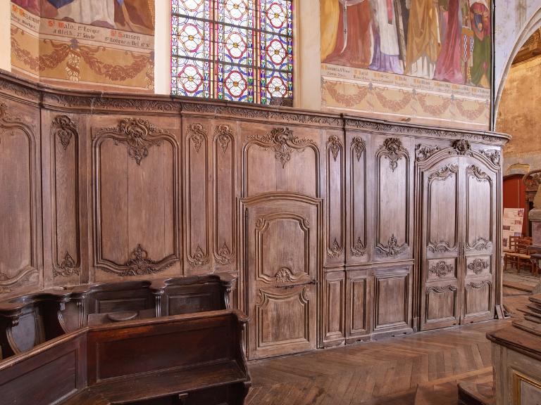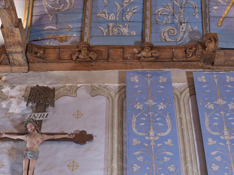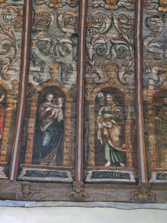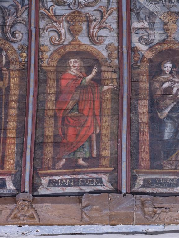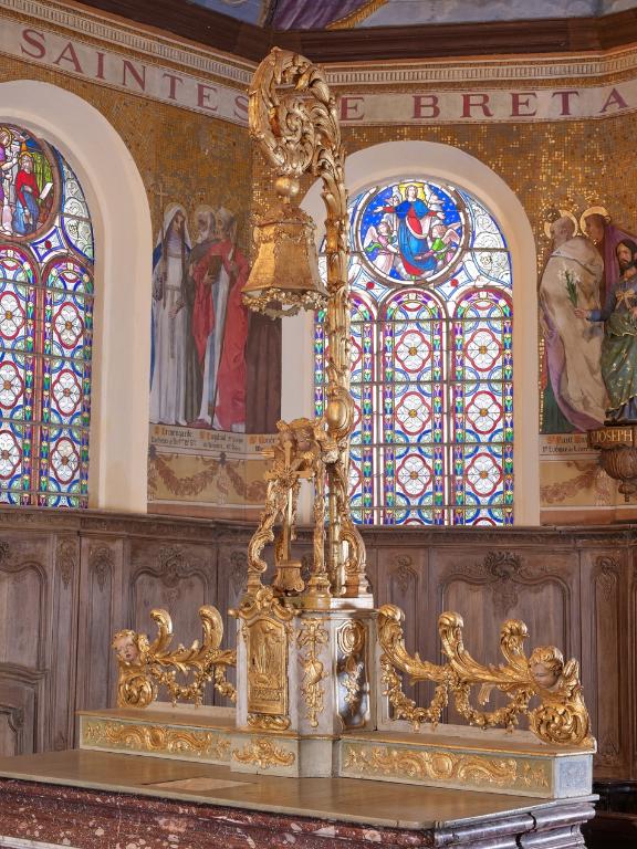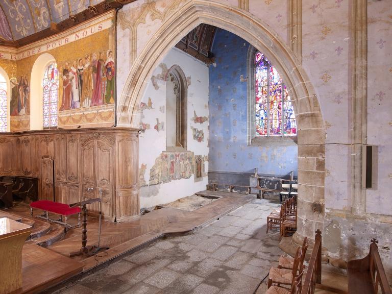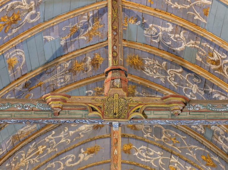 Vers le milieu du 19e siècle, l'intérieur de l'église fait l'objet d'une importante campagne de décoration. Le décor peint de la fausse voûte lambrissée est réalisé en 1858 par Raphaël Donguy de Saint-Brieuc. Les retables néo gothiques de la chapelle nord et de la chapelle sud par le sculpteur Paul Guibé en 1865 et 1868. Une grande composition peinte sur toile représentant la procession des saints de la Bretagne depuis les origines jusqu'à l'époque moderne est commandée en 1936 au peintre Victor Boner pour orner les cinq pans de murs du chœur.