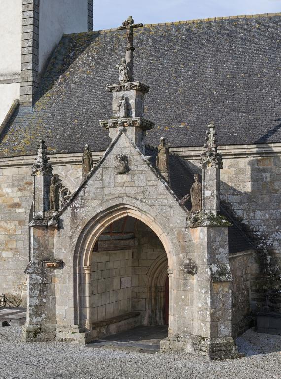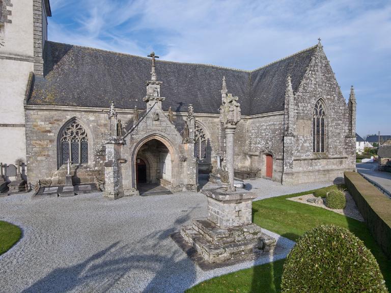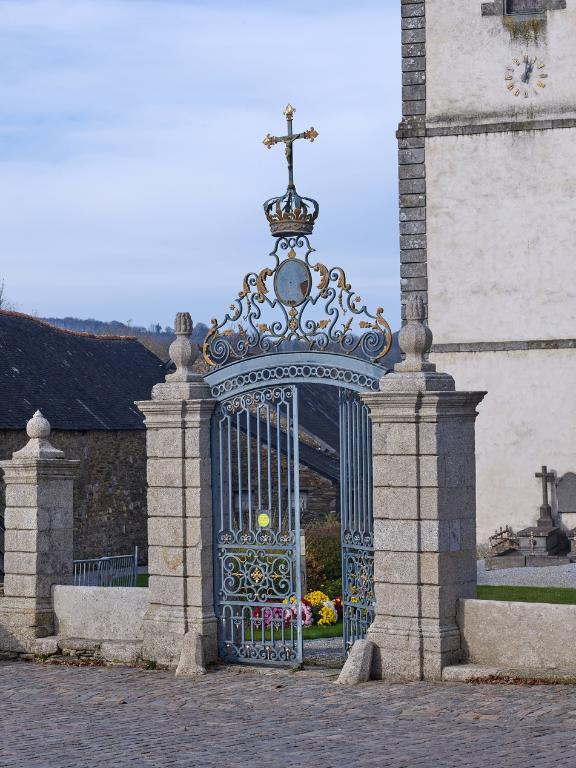 Le calvaire de l'enclos est édifié vers 1530. Des décors peints sont réalisés sur le lambris des fausses voûtes à la fin du 17 siècle, dont ceux redécouverts en 2017 dans la chapelle sud. En 1751, construction de l'imposant clocher-porche à l'ouest et de la chapelle des fonts baptismaux. En 1773, le portail de l'enclos ses piliers et sa belle grille de fer forgé réalisée par G. Ourry forgeron de Grâce-Uzel. En 1791, l'ancien chevet est démoli et remplacé par un nouveau chevet à trois pans destiné à recevoir le mobilier de l'abbaye de Bon Repos racheté par un négociant en toiles de la paroisse.
