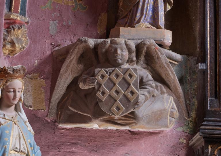 Sujet : armes des Rohan, support : console du bras nord du transept.