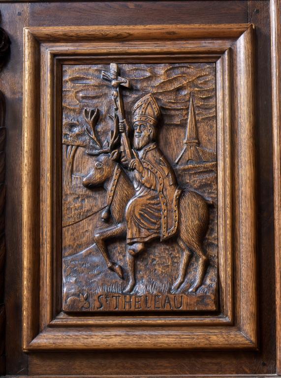 L'enrichissement de la fabrique paroissiale de Saint-Thélo aux 17e et 18e siècles se traduit par la reconstruction, l'embellissement, puis l'agrandissement de son église. Cet enrichissement est lié à la prospérité toilière et aux initiatives de quelques marchands de toiles. Ces derniers sont les principaux bénéficiaires du commerce des toiles de lin, et bien qu’ils investissent principalement dans l’architecture domestique, ils participent également aux chantiers paroissiaux dont la croix de cimetière fait partie.