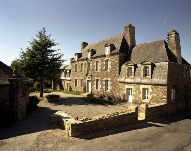 La maison est construite à l'entrée du bourg, perpendiculairement à la rue, orientée au sud. Elle est précédée d'une cour fermée par un mur de clôture, un portail d'entrée à piliers et deux dépendances. A l'ouest et au nord, jardin et vergers complètent la propriété. Le corps de logis principal à un étage est couvert d'un toit à croupes dont le comble est éclairé par des lucarnes en pierre à fronton cintré. Il est cantonné de deux pavillons, couverts d'un toit brisé dont l'étage de comble est également éclairé par des lucarnes en pierre. L'ensemble est construit en moellons de schiste soigneusement équarris, avec encadrements de baies en pierre de taille de granite. La rigoureuse symétrie de la façade est accentuée par la travée centrale, où porte d'entrée, fenêtre et lucarne sont encadrées de pilastres et surmontées d'un fronton. Le dessus-de-porte de l'entrée possède un oculus qui contribue à éclairer le vestibule. Les hautes souches de cheminées renforcent la verticalité du bâtiment. Un grand appentis à étage est accolé à la façade arrière du logis.