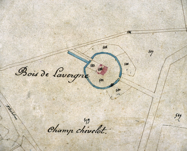 A 2,5 km au nord du bourg, au lieu-dit Bois Lavergne, le cadastre ancien montre une construction entourée d´un fossé circulaire à deux entrées.