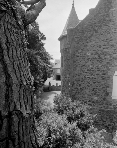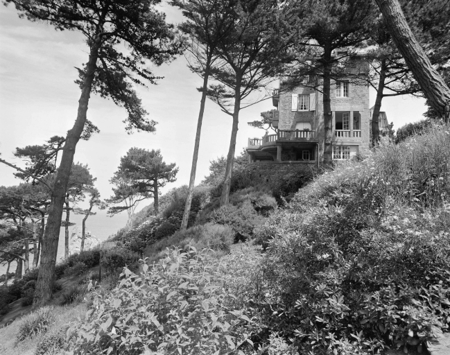 Le corps de bâtiment principal, couvert d'un toit à longs pans et pignon découvert asymétrique, présente quatre travées en façade postérieure sur mer. La travée latérale droite, dans l'alignement du mur, présente un mur-pignon en façade. La façade antérieure sur rue est animée par de multiples décrochements : tourelle d'escalier circulaire hors-oeuvre couverte d'un toit polygonal, avancée formant mur-pignon en façade et petit pavillon hors-oeuvre couvert d'un toit en pavillon. Le gros-oeuvre est en moellons de granite laissés apparents, seuls les entourages et couvrements de baies (linteaux, anse de panier), chaînes d'angles, et crossettes sont en granite rose. Certaines lucarnes sont couvertes d'un fronton-pignon triangulaire en maçonnerie avec crossettes, des balcons dont le garde-corps est en granite sont placés devant les portes-fenêtres. L'espace intérieur a été profondément remanié, notamment le soubassement, qui contient encore la cuisine. Les vantaux en ferronnerie du rez-de-chaussée ont pu être installés lors des travaux de 1938.