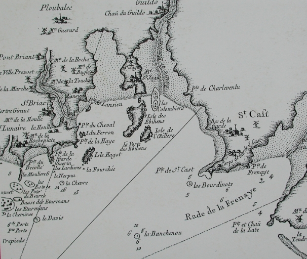 Cependant, la presqu´île de Saint-Cast offre aussi un littoral stratégique, entre le Cap Fréhel et la pointe des Décollés, entre le Cap et les Ebihens, avec ses nombreuses pointes, aux noms évocateurs, à l´est de la pointe de Saint-Cast, dominé par le sémaphore : la pointe du Malouin, la pointe du Grouin, la pointe du Châtelet, la pointe de la Corbière, la pointe de l´Isle (port Pérou), qui surveillent les plages de la baie de la Fresnaye ; à l´ouest : le port du Vallais et le port Jacquet, la pointe de la Garde (port de la Bouvette), la pointe du Bay et la pointe de Tiqueras.