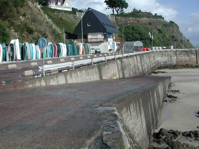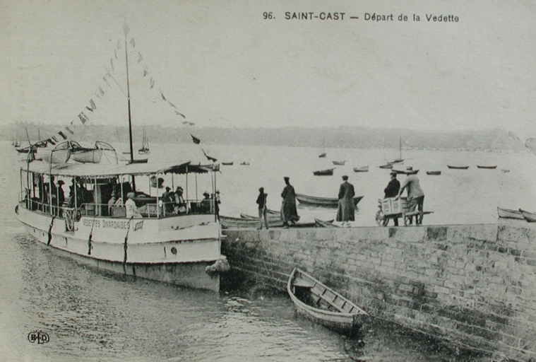 Le port du Vallais est le premier port "moderne" de Saint-Cast, après le havre de Port Jacquet, utilisé communément depuis la fin du 17e siècle, par les embarcations de pêche côtière et surtout les navires marchands, qui commercent avec Saint-Malo, transportant le poisson frais, les huîtres, les productions agricoles et surtout les platins de Saint-Cast, pour la construction de la ville de Saint-Malo. Le port du Valais relève de l'inspection des douanes de Saint-Servan. Un poste des douanes, situé au-dessus de la cale Jacquet, près du baromètre, surveille la côte et contrôle le trafic portuaire. En 1830, le port de Saint-Cast reçoit la visite de 170 navires totalisant 11.443 tonneaux. Des navires de 50 tonneaux viennent s'échouer régulièrement dans l'anse de la Vache, à quelque centaines de mètres de la carrière. Un projet de jetée ou brise-lames servant de débarcadère et de digue-abri jusqu'au rocher de la petite Feuillâtre, serait nécessaire pour améliorer l'accostage des bateaux, pouvoir augmenter leur tonnage, accueillir une station de pilotage, apporter les engrais minéraux utiles à l'agriculture. Une petite cale de 1 m de hauteur et de quelques mètres de longueur subsiste à l'est du projet initial. Les délibérations du conseil municipal vont se succéder en vain de 1860 à 1877, date à laquelle le Conseil Général des Côtes du Nord entend les doléances des Castins et demande la réalisation d'une jetée insubmersible de 80 mètres de longueur. Mais les deux avant-projets seront refusés par l'Etat, car jugés trop coûteux. Une seconde proposition plus modeste est projetée en 1882 au fond de l'anse entre la pointe du Vallais et la pointe sud de Fort-La-Lande, où la commune se propose d'établir un chemin vicinal de l'Isle St-Cast à la cale, et de fournir les pierres de construction, disponibles dans la carrière toute proche. Les latins de la carrière de Besnault (village de Lesrot) sont transportés à l'aide de civières par les ouvriers appelés perriers ou perrayeurs jusqu'à l'anse proche de la vache, où les bateaux viennent échouer sur des fonds d'herbier. Un argument nouveau vient relayer la requête de la commune, après la sécurité maritime, la création d'une station balnéaire. Mais les tergiversations vont encore durer entre la commission nautique locale, les représentants du Conseil général et des Ponts et Chaussées, avant qu'un compromis soit enfin trouvé en 1885. L'adjudication des travaux a lieu en septembre 1886 à la grande satisfaction des 160 pêcheurs de Saint-Cast, qui arment 30 bateaux. L'entrepreneur Lesaux peut commencer les travaux. Le plan définitif de la cale-débarcadère du Vallais jusqu'au rocher de la petite Feuillâtre (qui sera en partie dérasé pour l'occasion) prend forme sous le dessin de l'ingénieur ordinaire de la DDE Chicoineau en 1890. 5 aqueducs seront disposés pour permettre le mouvement des eaux à l'intérieur de la cale. Le chemin de l'Isle à la cale, large de 6 m est classé par la commission départementale en P.V. (petite vicinalité). Les marins-pêcheurs apportent leur contribution sous forme de journées de prestations volontaires. le projet définitif prolongera le quai sur une longueur de 47 mètres, avec un escalier de pierre, réalisée dans la roche, et un sentier pour faciliter le débarquement par mer calme, avant que la cale ne soit accostable. En 1892, le conseil municipal souhaite un nouvel équipement portuaire, soit une cale de radoub, s'appuyant sur un quai, pour faciliter le débarquement des marchandises (engrais marins et galets), entre son enracinement et la cabine des Ponts et Chaussées et des douanes (actuelle maison des plaisanciers). La nécessité d'un perré avec terre-plein au nord de la cale complètera au début du XX° siècle (1902-3) ce dispositif portuaire, pour accueillir les marchandises en transit (charbon). En 1925, la cale est en triste état et devra être restaurée maintes et maintes fois, en attendant la réalisation de la digue insubmersible de la pointe de l'Isle en 1970 et les enrochements de consolidation de l'anse à la Vache. En 1938, le conseil municipal projette de nouveau de rallonger la cale jusqu'au rocher de la grande Feuillâtre et de Bec Rond, en vain. En 1949, un projet de grand port est proposée par Ange Fromont, président du syndicat des marins pêcheurs de la cale du bateau de sauvetage, à la pointe de l'Isle jusqu'au rocher de la grande Feuillâtre, pour ceinturer la baie. Ce projet, qui préfigure un port en eau profonde sera repris 50 ans plus tard. Le plan régional d'équipement nautique de 1960 aura cependant permis les aménagements portuaires et les grands travaux tant attendue les années suivantes : la cale en béton du Vallais, le prolongement du terre-plein autour de la future "Maison des plaisanciers", la création d'un parking automobile, les locaux de l'école de voile et les aménagements du nouveau port, sous la conduite de l'architecte Mr Coulombeau : enrochement de l'anse à la Vache, route du sémaphore, dérochage de la plage de la Fresnaye, digue, jetée insubmersible, cale de mise à l'eau, terre-plein. Mais la tempête de 1987 allaient anéantir une bonne partie de ces efforts d'aménagement du nouveau port à échouage. Un projet de port en eau profonde pour la pêche et la plaisance est aujourd'hui en projet pour la première décade de l'an 2000 : une digue devrait enfin relier les rochers de la Feuillâtre et de Bec Rond, avec un seuil, pour ceinturer le port et assurer un meilleur abri aux bateaux. Cependant, le port du Vallais est toujours utilisé par les marins-pêcheurs et les plaisanciers, pour caréner leur bateau, effectuer une réparation, ou utiliser les commodités d'un échouage, à l'abri de la digue, ou encore pour remonter sur la cale des embarcations de moindre tonnage. Aujourd'hui, l'appellation courante de port du Vallais englobe le nouveau et l'ancien port, avec une rue 