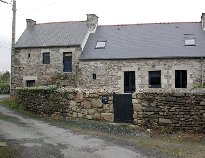 Maison constituée de deux logis mitoyens construits en schiste pour le gros-oeuvre. Encadrement des ouvertures appareillé de granite en pierre de taille. Logis sur dépendance à l'ouest flanqué d'un escalier droit desservant l'accès à la partie habitation. Logis à deux pièces en rez-de-chaussée à l'est. Façade postérieure remaniée.