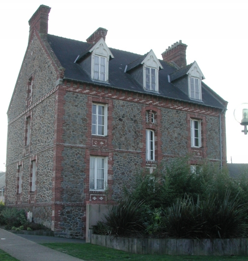 Edifice de type ternaire sur soubassement construit en granite et brique. Les encadrement des ouvertures, les chaînages d'angle, les rampants et les souches de cheminées sont appareillés de moellons de brique. Le faîte du mur gouttereau est également couronné d'une frise décorative appareillée de brique polychrome avec assises alternées.