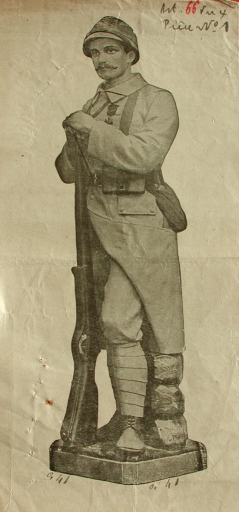 L'édicule, sculpté dans du granite bleu de Saint-Brieuc, est constitué d'un soubassement à degrés sur lequel repose un obélisque décoré de palmes à l'avant et à l'arrière. Une statue en fonte d'une hauteur d'1,75 mètre représentant un Poilu repose sur un socle. Une inscription commémorative est située à l'avant. Des plaques de marbres portent les noms des soldats à l'avant et sur les côtés. L'entourage est constitué de huit obus peints reposant sur des embases chanfreinées.