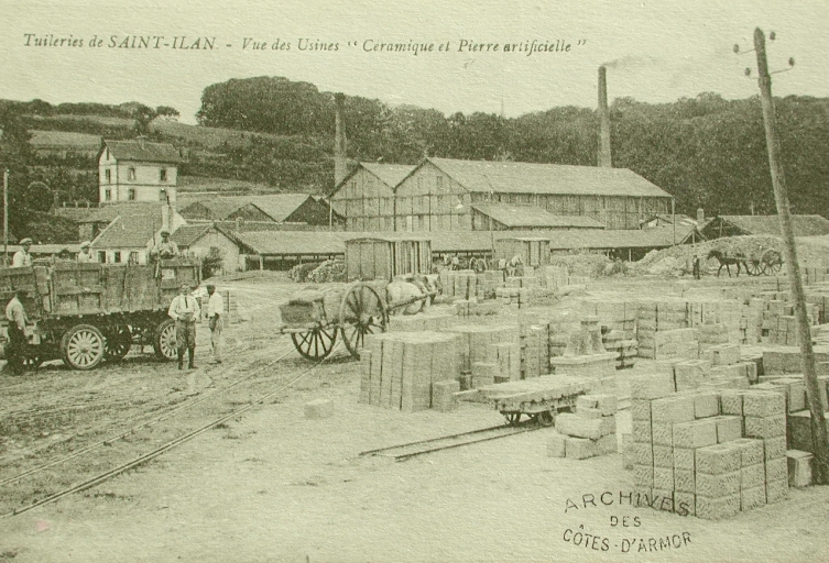 La société des Tuileries et Briqueteries de Saint-Ilan a vu le jour en 1864 sous l'impulsion d'Olivier du Clézieux, maire de Langueux de 1871 à 1904, et de François Rouxel de Villeferon, armateur à Plérin. L'usine, raccordée à la ligne de chemin de fer en 1922, était réputée pour sa fabrication de tuiles, briques, céramiques et pierres artificielles. Elle a notamment fourni au réseau ferroviaire départemental les briques destinées à la construction des gares et des ouvrages d'art d'Harel de la Noë. Restée en activité jusqu'en 1940, elle fut réouverte en 1946, définitivement fermée en 1947, puis radiée du registre de commerce de Saint-Brieuc en 1949. Une partie de l'usine fut détruite en 1952, ainsi que les deux grandes cheminées du four au cours des années 1970. Le site a été reconverti en espace de découverte des activités traditionnelles et industrielles de la baie de Saint-Brieuc. On y découvre les activités de saunaison, de maraîchage, de pêche à pied, l'histoire des briqueteries, l'histoire humaine et technique du chemin de fer des Côtes-du-Nord, ainsi que l'oeuvre de l'ingénieur Harel de la Noë. Les vestiges de l'ancienne usine datent du 4e quart 19e siècle (four industriel de type Hoffmann) et de la 1ère moitié du 20e siècle. Ils ont été restaurés à la fin du 20e siècle.