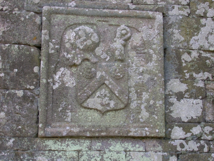 Les bas-reliefs armoiriés encastrés dans le mur du moulin.