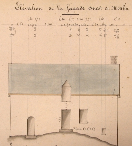 Typologiesmoulin intermédiaire, de plan allongé, comptant moins de deux étages carrés, abritant parfois le logement du meunier à son extrémité (type B3)