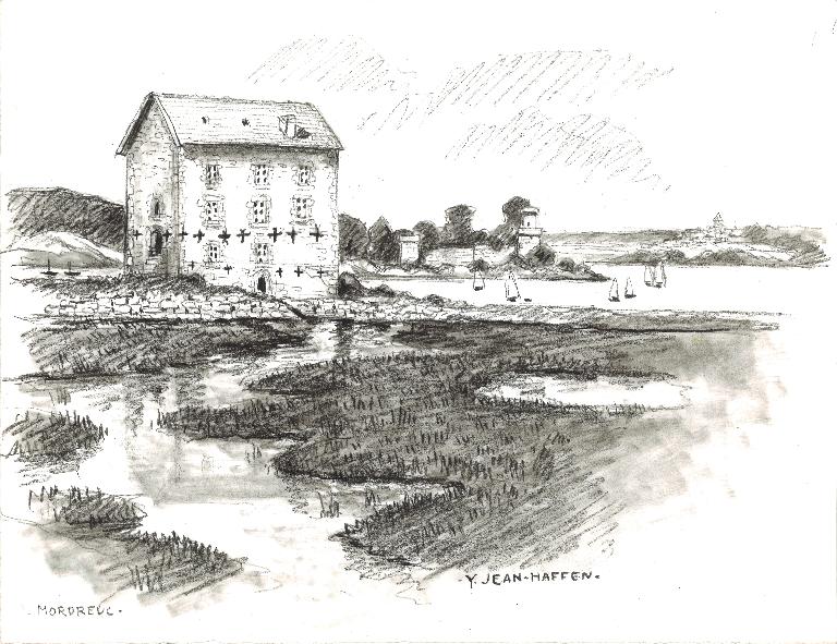 L'existence du moulin à marée de Mordreuc est attestée au début du 16e siècle (il est mentionné en 1506). Il appartient avant la Révolution à Etienne Auguste Baude. En 1799, il est vendu comme bien national à François Damal pour la somme de 12 600 livres. En octobre 1888, Jean Marion, le nouveau propriétaire, est autorisé à réparer la digue en pierres sèches de l'usine. Dix ans plus tard, en 1898, il fait reconstruire le moulin à marée sur ses anciennes fondations. Il profite de cette reconstruction pour élever d'un étage le bâtiment qui ne comportait qu'un rez-de-chaussée surélevé placé au-dessus du niveau des grandes marées. Le moulin mesure alors 16 m de longueur sur 7, 08 m de largeur. A partir de 1927, il est exploité par la famille Crespel. En 1936, sa capacité d'écrasement journalier est de 60 q. En 1939, alimentée uniquement par l'énergie marémotrice, la minoterie Crespel fonctionne 14 h sur 24 h et huit jours sur quinze. Elle cesse de fonctionner en 1955. D'abord transformé en crêperie, le bâtiment abrite actuellement une maison. En 1936, la force motrice est obtenue par une roue à aubes qui développe 25 ch. A cette date, le matériel de mouture se compose de quatre broyeurs, trois convertisseurs, une bluterie ronde, deux bluteries centrifuges et cinq bluteries hexagonales. En 1939, le moulin de Mordreuc emploie un salarié.