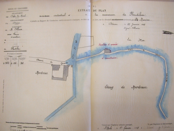 AD Côtes d'Armor. Série S ; sous-série 10 S : 10 S 5 (8) IV. Ponts et chaussées : voies navigables, intérieures et maritimes. Canal d'Ille-et-Rance et Rance maritime. Pleudihen, concessions et réglementations de prises d'eau, 1888-1898.
