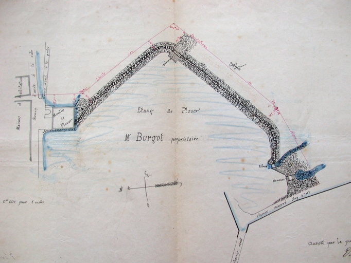 AD Côtes d'Armor. Série S ; sous-série 10 S 5 (9) IV. Service des ponts et chaussées : voies navigables, intérieures et maritimes. Canal d'Ille-et-Rance et Rance maritime. Plouër, concessions et réglementations de prises d'eau, 1830.