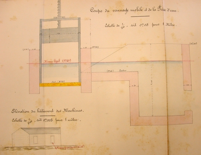 Parties constituantes non étudiéessalle des machines, bureau, logement de contremaître, bassin de retenue, barrage, réservoir
