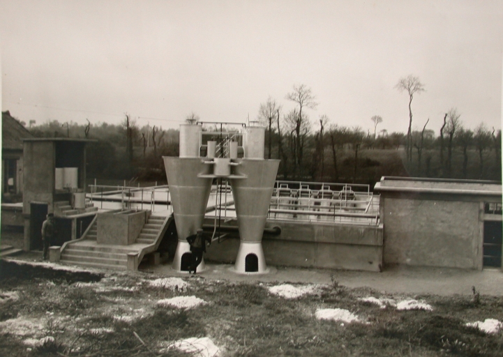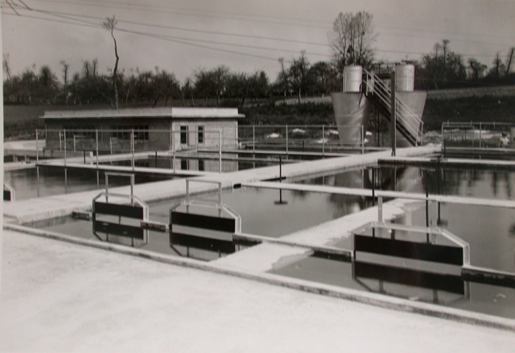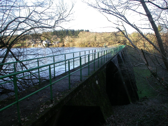 L'établissement des eaux de Bobital trouve son origine en 1862, dans la mise en service de la première adduction qui consistait à dériver le ruisseau de Cassepot pour alimenter par gravité un réservoir installé dans le centre ville de Dinan (22). Rapidement insuffisante, cette installation est complétée à partir de 1898 par la construction à Bobital, par la ville de Dinan, de réservoirs et d'une station de pompage. L'usine des eaux, la maison du mécanicien et la salle des machines abritant une machine à vapeur sont édifiées entre 1900 et 1901. Réglementé par arrêté préfectoral du 29 janvier 1901, un barrage est établi sur le ruisseau du Guinefort dans le but de produire de l'eau potable pour Dinan et sept communes environnantes : Léhon, Quévert, Lanvallay, Taden, Trélivan, Aucaleuc et Tressaint. Les ouvrages du barrage consistent simplement en un aqueduc de prise d'eau en grès, mesurant 0, 35 m de diamètre et 25 m de longueur environ, situé perpendiculairement à la direction du cours du Guinefort, et en une vanne-barrage qui occupe tout le lit de la rivière ; celle-ci mesure 1, 30 m de largeur et 0, 50 m de hauteur et est placée à 40 m en amont du pont de la route départementale 793 qui relie Dinan à Brusvily (22). En 1923, la ville de Dinan achète l'étang du Val situé près de Bobital ; il s'agit alors d'une réserve de 150 000 m3 d'eau. Dix ans plus tard, les captages de Bobital sont remis en état. La salle des machines est agrandie à l'est. En 1959-1960, on construit le barrage actuel de Bobital qui retient 554 000 m3 d'eau. Il s'agit d'un barrage en béton à voûte unique de 9, 50 m de hauteur et dont la longueur du développement de la crête mesure 83, 78 m. En 1965, un autre station de pompage est construite afin de capter la source du Bois-Riou à Quévert (22). Entre 1971 et 1973, un second barrage est édifié au Pont-Ruffier. D'une hauteur de 16, 40 m, il retient un volume d'eau de 1 900 000 m3. Au pied du barrage, une station de pompage refoule l'eau brute dans la retenue de Bobital. En 1989 et 1990, une nouvelle unité de traitement des eaux (toujours active) est construite en remplacement de celle existante, légèrement à l'ouest ; l'ancienne salle des machines et le logement du contremaître (maison du mécanicien) sont restaurés à cette occasion.