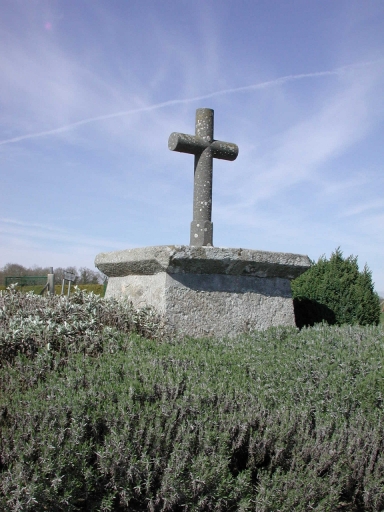 Croix taillée dans le granite, au fût de section octogonale à la base, puis circulaire. Elle est dressée sur un soubassement à corniche débordante appareillé en maçonnerie de granite et posé sur un emmarchement.