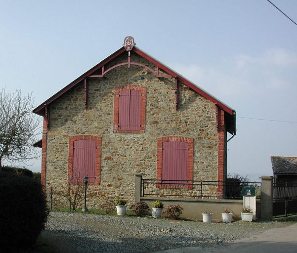Maison de plan massé construite en granite pour le gros-oeuvre. Encadrement des ouvertures et chaînage d'angle appareillés de moellons de brique. Toiture à ferme défordante et aisseliers décoratifs.