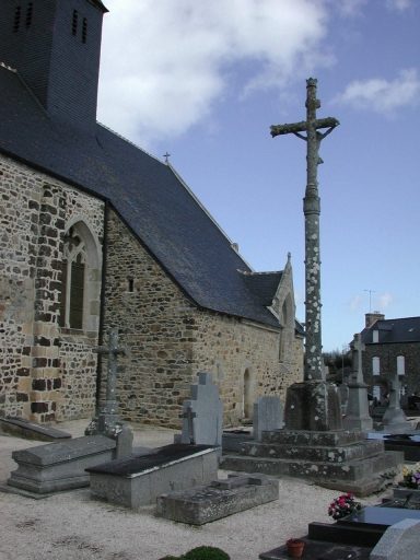 Concernant l´architecture religieuse, funéraire et commémorative de la période contemporaine, on notera le repérage d´une croix de cimetière des ateliers Hernot située à proximité immédiate des tombes des recteurs [fig. 15], ainsi que la présence du monument aux morts exécuté en partie en kersanton par l´entrepreneur Louis Charpentier en 1925 [fig. 16].