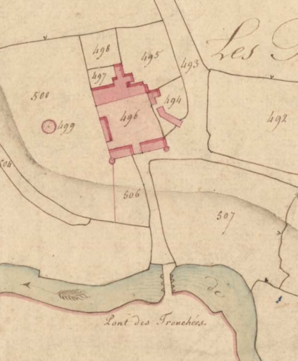 Parties constituantes non étudiéescour, mur de clôture, colombier, chapelle, grange, fournil, étable, pont