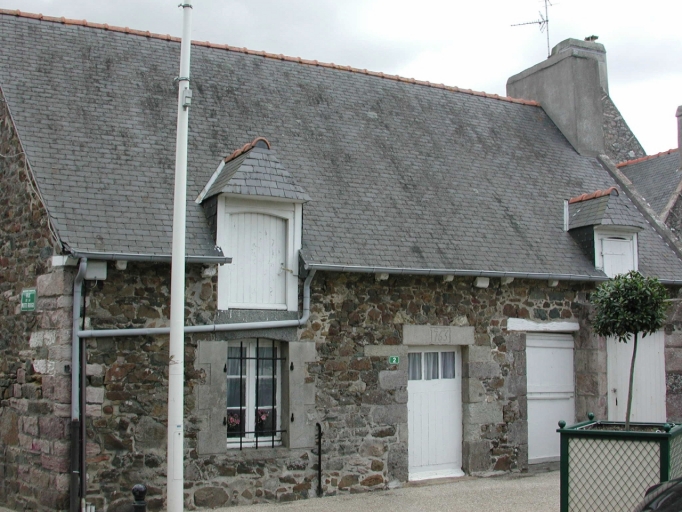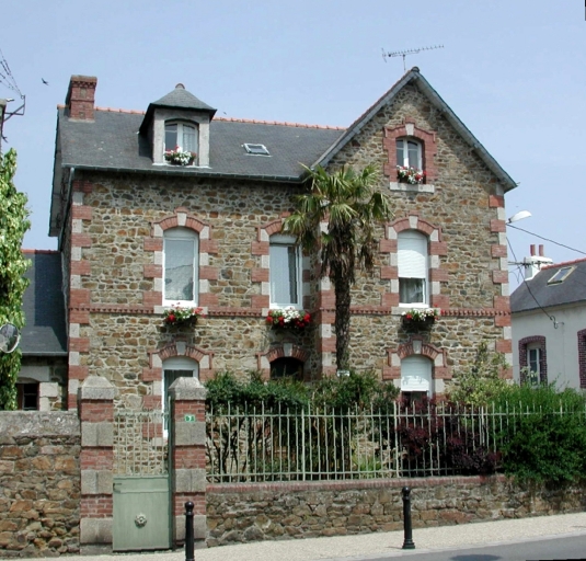 A l´instar des maisons situées au n° 19, rue du Maréchal Foch et au n° 1, route d´Erquy [fig. 15, 16], les édifices antérieurs aux années 1880 présentent une construction en granite et grès, sur un plan rectangulaire simple en profondeur, à deux ou trois travées, à pignon découvert dans certains cas, et chaînages d´angles systématiquement appareillés de grès rose sommairement taillé se détachant du gros-oeuvre de couleur sombre. Ce dernier présente même dans certains cas des éléments ponctuels en poudingue, localement dénommé "renard" [fig. 17].