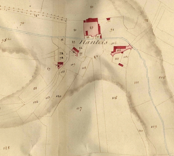 Le château de Nantois est situé dans un environnement naturel et architectural exceptionnel. Le corps de logis, adossé à un versant escarpé, et les parties agricoles forment un plan général en U. Une cour, ouverte au sud, est précédée d'une longue avenue autrefois bordée de hêtres. Une conciergerie commande l'accès au site. Le corps de logis, dont le gros-oeuvre est couvert d'un enduit, est construit sur un plan rectangulaire allongé. Il comprend une tour d'escalier centrale, de section carrée, à quatre étages, coiffée d'un toit à l'impérial, flanquée de part et d'autre de deux ailes latérales basses à deux pièces par étage séparées par un mur de refend montant de fond en comble. La partie de gauche est également flanquée d'une aile latérale plus basse. Une partie agricole ancienne, disposée perpendiculairement à la partie habitation, présente deux édifices construits en vis-à-vis sur un plan rectangulaire allongé. Ils sont surmontés d'un comble à surcroît et couverts d'un toit en croupe.