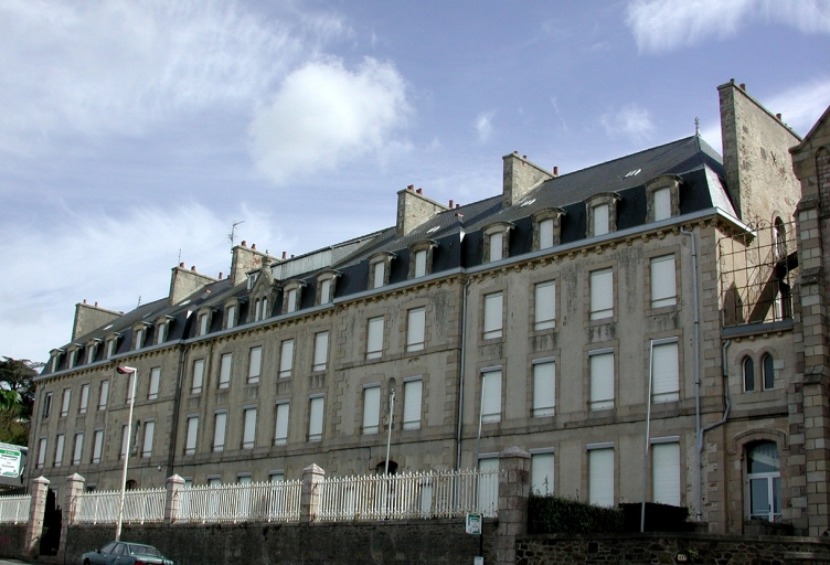Edifice de plan rectangulaire allongé symétrique, à double orientation et double en profondeur, à deux étages carrés. Construction en granite et grès. Façade antérieure soulignée par deux avant-corps légèrement saillants orné d'une niche à statue. Eléments de décor : corniche à modillons, lucarnes, statue.