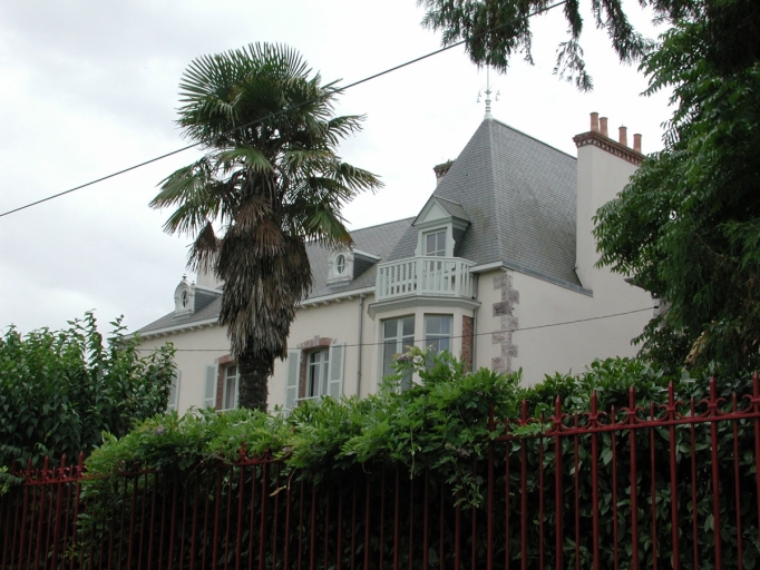 Maison de plan rectangulaire allongé, à quatre travées en façade antérieure, construite en granite (?), grès et brique, comprenant deux parties inégales séparées par un mur de refend : un corps de type ternaire à gauche, un corps perpendiculaire présentant un oriel à deux niveaux, à droite. Eléments de décor : lucarnes architecturées, ferronnerie (grille et portail), épis de faîtage en zinc, oriel à deux niveaux, toit en pavillon, brique (encadrements des ouvertures, bandeau et souches de cheminées).