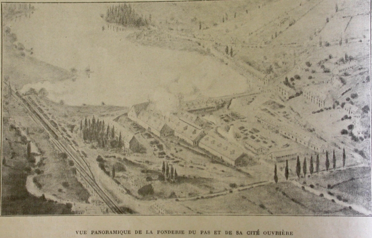 Le 6 août 1828, César René de Choiseul est autorisé à édifier un haut fourneau pour le traitement du minerai de fer à l'emplacement de l'un des moulins à farine qu'il possède sur l'étang du Pas, à la lisière de la forêt de Lorge. Le minerai utilisé pour son alimentation provient des minières situées au Bas-Vallon, le combustible de la forêt de Lorge et la castine de Cartravers, à la Harmoye (22) où le comte y exploite une carrière de marbre et un four à chaux. Au début de son exploitation, l'usine métallurgique du Pas, orientée exclusivement vers la production de fonte, comprend un vaste étang d'une surface d'1, 5 ha servant à son alimentation énergétique, un haut fourneau de 12, 50 m de hauteur situé en contrebas de la chaussée de l'étang, les logements du directeur et du maître-fondeur, un bâtiment abritant écurie et étable, et la halle du fourneau composée de trois corps de bâtiment abritant respectivement la moulerie, la machine soufflante et la forge. A proximité du haut fourneau se situent un four destiné au grillage du minerai local et un four à coke pour carboniser la houille. En 1835, 25 000 à 30 000 barriques à charbon servent à la fabrication de 800 000 kg de fonte. En 1837, l'établissement est racheté par J.-M. Allenou qui acquiert parallèlement la forêt de Lorge, le château de l'Hermitage, la mine du Bas-Vallon, la carrière et le four à chaux de Cartravers. Trois années plus tard, la production s'élève à 1000 t de fonte, puis 3 000 t en 1870 ; l'usine fabrique à la fois de la fonte brute et de la fonte moulée de première fusion avec du minerai du pays et en provenance de Bilbao, le coke étant acheté à Newcastle. L'entreprise profite alors pleinement de la création de la ligne de chemin de fer Saint-Brieuc-Pontivy, laquelle constitue une véritable aubaine pour la commercialisation des produits. Un raccordement facilite la réception des matières premières et l'expédition des produits finis. La chapelle, toujours en place, est édifiée en 1852. A partir de 1880, l'établissement subit la concurrence des Forges et laminoirs des Côtes-du-Nord établis à la fin du Second Empire à Saint-Brieuc (22), et se convertit alors en fonderie de seconde fusion ; l'extraction du minerai devenant de moins en moins rentable, l'usine se dote d'un cubilot destiné à la fonte de fer de récupération et d'acier. En 1906, l'entreprise est rachetée par Adolphe-Henry de Villeneuve qui la transforme en société en nom collectif au cours de la Seconde Guerre mondiale. Durant les premières décennies de ce 20e siècle, même si l'usine fournit la Marine et les Chemins de fer de l'Etat, sa production répond surtout aux besoins de l'économie locale et concerne essentiellement la fabrication de machines agricoles et diverses pièces mécaniques, mais aussi quelques éléments de voiries comme les plaques d'égout. Pendant la Première Guerre mondiale, elle fabrique des corps de grenade à main. Le logement patronal date d'après Guerre. La superficie totale de l'usine représente plus d'un hectare sur lequel se répartissent notamment les ateliers de mécanique, de triage des pièces, d'entretien, de modelage ou de menuiserie, d'usinage ou de finition et la fonderie. En 1923, l'entreprise fait installer une succursale au port du Légué, à Saint-Brieuc (22). Vers 1950, la société se transforme en SARL après avoir absorbé la fonderie du Légué, à Saint-Brieuc (22). C'est aussi en 1950 que l'usine est rattachée au réseau électrique. En 1957, elle absorbe les fonderies de Servon (35) et de Tanvez, à Guingamp (22), pour donner naissance aux Fonderies du Pas et Brisou réunies. L'usine fonctionne alors avec deux cubilots. L'entreprise dépose son bilan le 7 avril 1977 et cesse définitivement son activité le 30 novembre 1978. Les bâtiments d'exploitation (fonderie, halle, haut fourneau, ateliers mécanique, d'usinage, de triage des pièces, de modelage, etc.), situés juste en aval de l'étang, ont été entièrement détruits en 1981, seuls subsistent de part et d'autre de cet espace, les logements d'ouvriers à l'ouest, et à l'est le logement patronal, ainsi que la chapelle. En 1830, la soufflerie à pistons est actionnée par une roue à augets, laquelle sera conjugugée, en 1870, à une machine à vapeur développant 10 ch ; deux autres machines à vapeur sont destinées au concassage du minerai. En 1919, H. de Villeneuve déclare une chaudière à vapeur de forme tubulaire Compound, provenant du constructeur Massivet et Cie, à Nantes (44). La force motrice hydraulique est fournie par un étang de 6 ha environ, qui alimente, en 1926, deux turbines développant un total de 62 ch ; en cas de sécheresse, une force motrice de 50 ch supplée à l'insuffisance de force. En 1840, l'usine emploie trois cent ouvriers contre quatre cent en 1870. Lors de son dépôt de bilan, l'entreprise comptait cent salariés au Pas, cent-vingt à Servon (35) et cent à Guingamp (22).