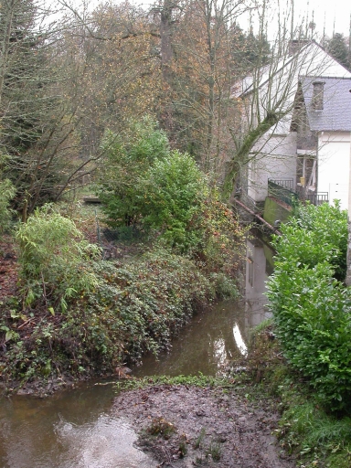 Edifié en moellons de schiste et de granite, l'édifice, qui forme une sorte de plan en L, comprend le moulin, à un étage carré, et l'ancien logement du meunier, à un étage de comble supplémentaire ; il est couvert d'un toit à longs pans en ardoises. Les anciennes écuries sont situées à proximité.