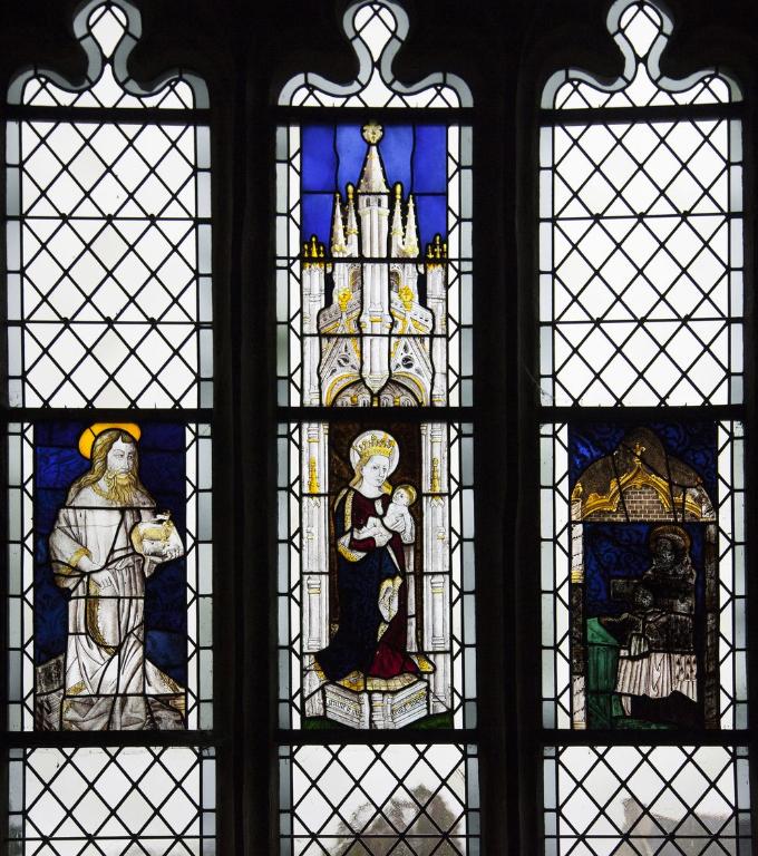 À l’entrée de la nef, est exposée au nord, une pierre tombale provenant de l’ancien cimetière de la chapelle (disparue) hospitalière Saint-Jean de Brézéhan, Ploumilliau. Les travaux du XIXe siècle se lisent parfaitement sur les quatre premières travées au nord, la cinquième correspondant au transept et datant du XVIe siècle. Au sud, les travaux du XVIe siècle se traduisent dans les deux premières travées en arc brisé à multiples voussures à pénétration directe. Au niveau de la première travée sud, une tour-escalier distribue une salle, anciennement un archivier, située au-dessus du porche méridional. De l’ancien édifice médiéval, il reste un fût de colonne cylindrique contre le gouttereau sud à droite de la porte du porche, servant aujourd’hui de piédestal à une statue de Jeanne d’Arc. On peut signaler les vitraux des XVes et XVIes siècles remontés dans les baies 0 et 4. Sur la verrière de la baie axiale figure un Calvaire daté des années 1490-1500, la baie 4 présente une Vierge à l’enfant sur un dais d’architecture accompagnée de Saint-Jean-Baptiste à gauche et Saint-Yves à droite.