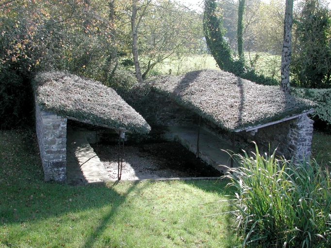 Lavoir fermé sur trois côtés (au sud, à l'est et à l'ouest), partiellement couvert par deux toits en appentis en vis-à-vis, contenant un bassin rectangulaire. Dalles de schiste au sol.
