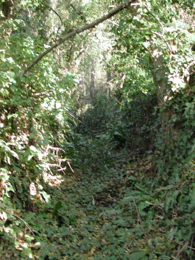 Vestiges d'un chemin piétonnier conservé sur une distance d'environ 150 mètres. Bordé de talus en partie appareillés de moellons de schiste et de granite, il est envahi par la végétation.
