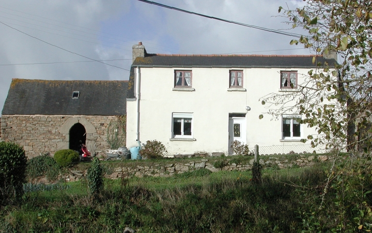 Maison à deux pièces au rez-de-chaussée, remaniée et dénaturée, flanquée d'une partie agricole de plan massé construite en granite, ouverte d'une porte à arc brisé.