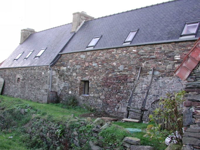 Edifice restauré construit en granite et schiste (schiste pour le gros-oeuvre et granite pour les encadrements d'ouvertures et les chaînages d'angles), composé de deux logis-jumelés séparés par un mur de refend montant de fond en comble : maison à avancée antérieure peu saillante à gauche et maison à deux pièces au rez-de-chaussée à droite. Partie agricole de plan massé à l'arrière, à fonction indéterminée, construite en granite et schiste, couverte de tuiles mécaniques.