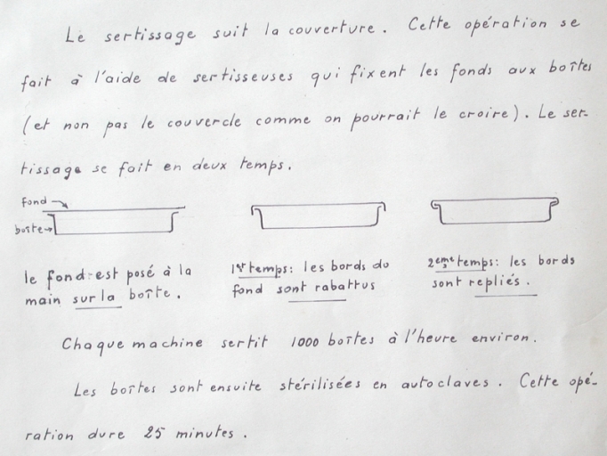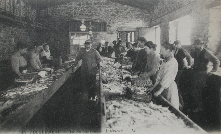 La première usine à sardines, dite "friterie et salaison" a été créée en 1880 par M. Huon de Penanster, propriétaire du manoir de Kerhuic en Trédrez et ancien député de Plestin-les-Grèves à Locquémeau. Ce type d'établissement classé dangereux et insalubre par la préfecture fut l'objet d'une enquête commodo et incommodo en 1879, qui a donné satisfaction, approuvée en particulier par le maire de Trédrez-Locquémeau Jean Le Vot. Un arrêté préfectoral daté du 3 janvier 1880 a autorisé cette construction sur la parcelle cadastrée n° 910, au lieu dit en breton "Ar Nenesdelle". L'aventure industrielle de la sardine à Locquémeau pouvait commencer ; elle allait durer 70 ans jusqu'en 1952. La direction-gérance de cette première usine fut confiée à A. Rustuel. Celui-ci fit engager dans un premier temps de la main d'oeuvre féminine du Finistère pour former les ouvrières de Locquémeau. En 1884, après une belle campagne, elle employait 40 personnes, réduites à 15 en 1906. Elle était ravitaillée en fournitures, sel, rogue, merrains, huile par des caboteurs de 50 à 60 tonneaux (AD 22, 6M 863). Une trentaine de chaloupes douarnenistes se joignaient à celles de la baie de Lannion pour les campagnes de 1880 et 1881 (AD 22, 11 S7/ 152). A partir de 1900, un autre usinier, originaire du Finistère, Robert Collet, prit la place de Huon de Penanster et développa cette activité sur le même site dans la 2ème moitié du 20ème siècle, rejoint par un autre usinier Harmelin. M. Collet, entrepreneur très innovant, fabriquait même de la soude de varech pour les productions chimiques et tenait un dépôt de sel pour les cultivateurs, qu'il pouvait fournir en engrais. Il utilisait les séchoirs à sardines pour sécher le goémon. A côté de son entreprise, Robert Collet construisit des bateaux en bois avec l'aide d'un charpentier du Diben, Vincent Rolland, qui monta par la suite son propre chantier naval à Primel-Trégastel. Les bateaux Collet étaient réputés pour leurs qualités de navigation et participaient aux régates de l'époque. Pendant l'hiver les établissements Collet affrétaient des bateaux pour le commerce de la pomme de terre en Grande-Bretagne (la variété "Duc") à partir du port de Tréguier. La senne Belot fut introduite en 1874 pour intensifier la pêche, mais ces grandes poches n'étaient pas adaptées pour les fonds rocheux. La grande crise sardinière de 1902 à 1912 allait frapper de plein fouet cette activité naissante, marquant un coup d'arrêt. L'atelier de Beg-Hent fermait ses portes en 1903, les usines de Locquémeau en 1906 et 1909, celle de la pointe de Bihit en 1909. On espèrait un renversement de la situation vers 1925, grâce à de meilleurs rendements avec l'emploi des filets tournants ou coulissants que venait d'autoriser un décret du 6 mars 1925. Les deux sardineries de Locquémeau Armelin et Collet rouvrirent en 1927 avec 20 personnes pour la conserve en boîte et 10 personnes pour la salaison (en saumure). Elles furent désormais connues sous l'appellation de "Conserveries de la Baie". L'activité s'éteignit autour des années 1950-54, malgré l'arrivée de deux repreneurs messieurs Doutremer et Leclerc (originaire de Lille) associés après la guerre 1939-45 pour reprendre la friterie, sans succès. La dernière pêche de sardines fut vendue par les mareyeuses de Locquémeau en 1956 à Trébeurden, après la fermeture de l'usine. L'usine pouvait aussi affréter des bateaux directement pour son compte, comme le sardinier "Annie-France" LA 72, construit à Primel, chez Vincent Rolland pour le compte de Eugène Cloître, puis vendu à Louis Cabel.