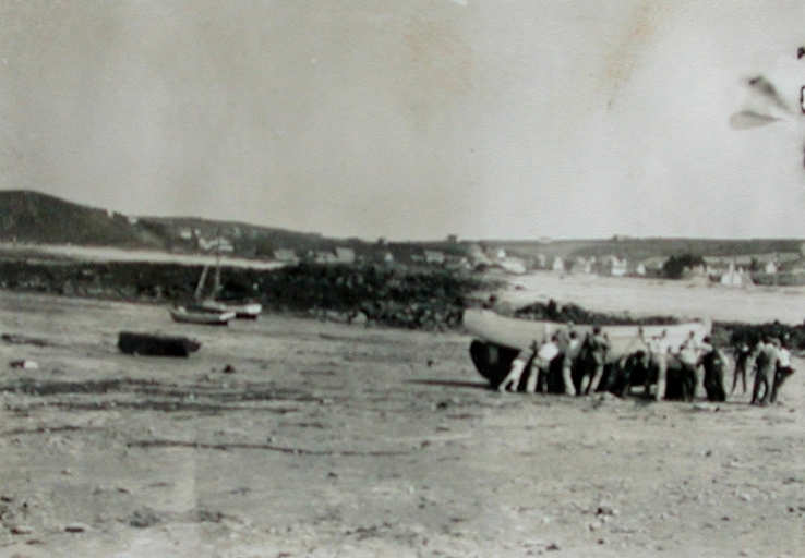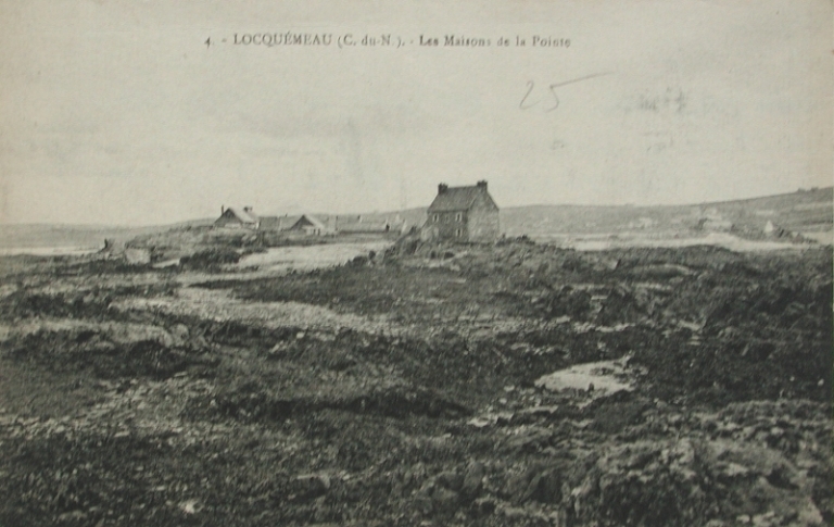 Maison construite en 1896 (porte la date), attestée comme restaurant et crêperie au début du 20ème siècle à l'enseigne du "Goûter Breton de Locquémeau", puis comme chantier naval vers 1930-1940 (chantier naval Landouar).